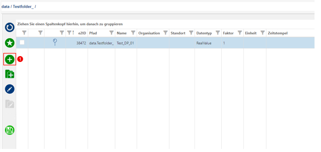 Damit du einen Vorschub-Zähler im eco2lot anlegen kannst, begibst Du dich zunächst in den Ordner, in welchem dein Datenpunkt liegt.